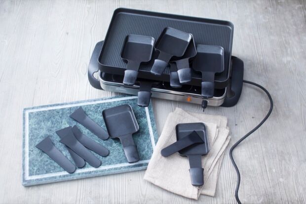 Am einfachsten ist es natürlich, wenn eure Raclette-Bestandteile in die Spülmaschine dürfen, doch das ist leider nicht bei allen Geräten der Fall. Bei Geräten mit einer Teflonbeschiteten Grillplatte löst ihr grobe Verschmutzungen am besten direkt nach dem Benutzen mit einem der Holzspatel. Fettrückstände auf der Platte mit einem feuchten Tuch abwischen, solange die Platte noch leicht warm ist. Die kalte Platte könnt ihr anschließend mit heißem Wasser und Spülmittel reinigen. Sollten noch hartnäckige Rückstände vorhanden sein, die Platte über Nacht einweichen lassen.