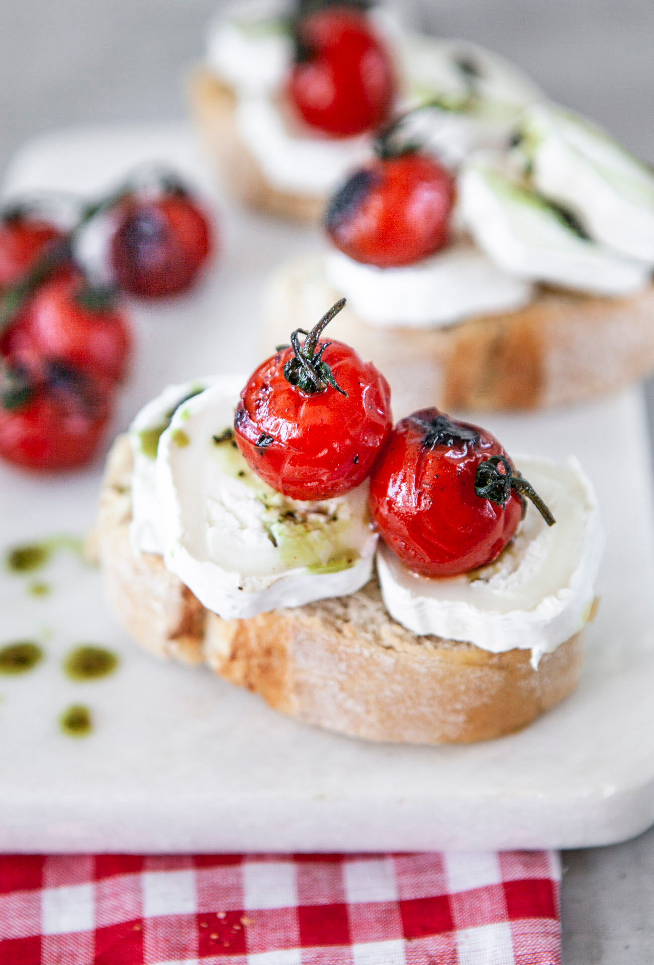 Schnell und einfach Bruschetta mit Kirschtomaten und Ziegenkäse